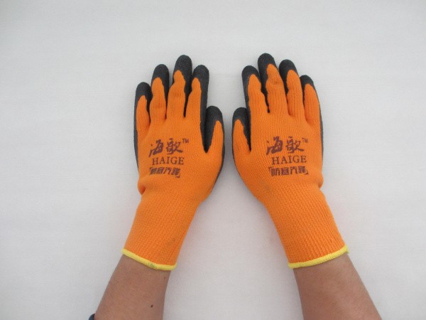 黃紗紅拉絨半浸膠手套